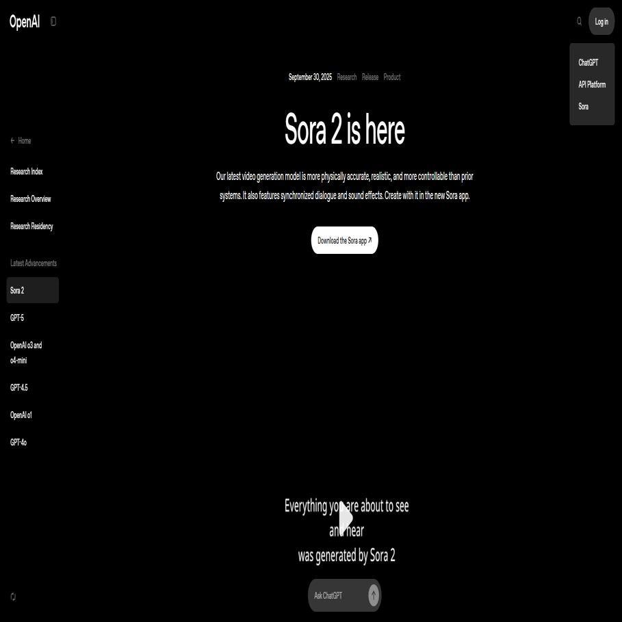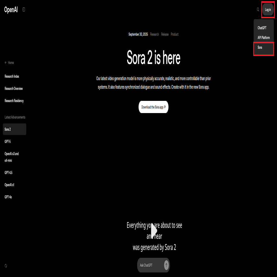 - OpenAIのSora2のページにアクセスする