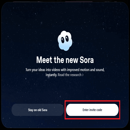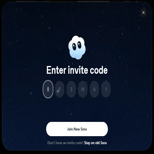 - 招待コードを入力して「Join New Sora」をクリックする