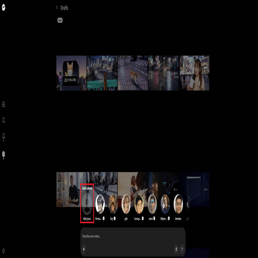 こちらはカメオ機能といって、Sora2の動画に自分や友人を出演させることができる機能です。